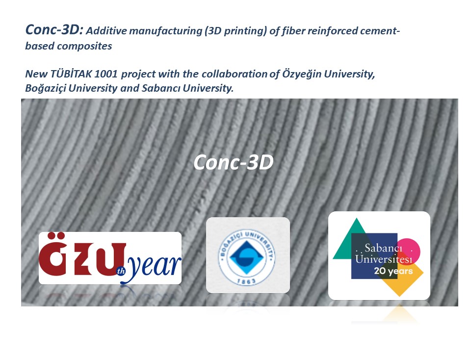 A new TÜBİTAK 1001 project with the collaboration of Özyeğin University, Boğaziçi University and Sabancı University was accepted. An automated system enabling additive manufacturing of fiber cement-based composites will be developed in the scope of the project. Results and dissemination of the work will significantly contribute to the state-of-art and be one of the pioneering studies leading the technological advancement of additive manufacturing in construction.