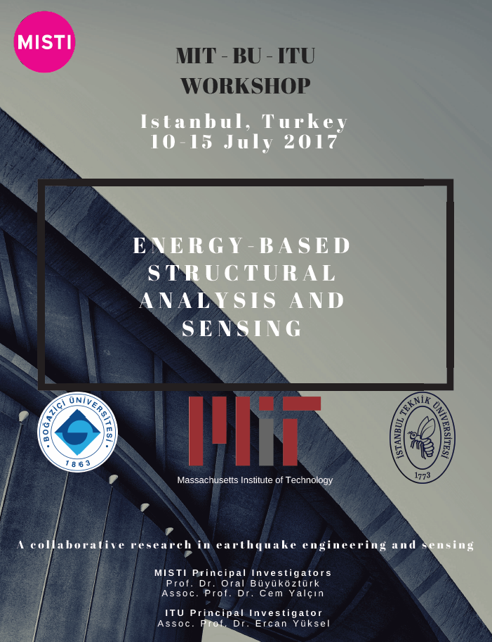 This collaborative research workshop is being held through the MIT-BÜ MISTI international program for research, education and outreach between July 10-14th, 2017. The objective of the workshop is to further develop energy-based design (EBD) concepts through comprehensive experimental studies using novel data acquisition and data processing techniques, as a basis to provide design recommendations for new structures with better earthquake hazards resistance. Workshop program and detailed information is available on energybaseddesign.org web site.